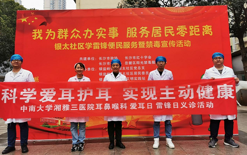 3月3日和3月5日是全国第24个爱耳日和第60个学雷锋纪念日。为了大力弘扬雷锋精神、深入宣传“科学爱耳护耳 实现主动健康”的意识,中南大学湘雅三医院耳鼻咽喉头颈外科组织开展了一系列义诊活动,30余名医护人员参与活动,直接受益人群超400人。