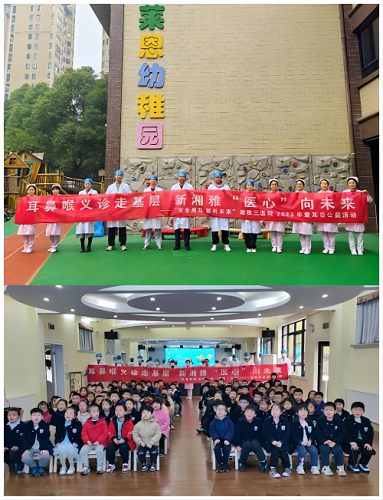 3月3日上午,耳鼻咽喉头颈外科卿翔主治医师带领科室12名医护人员在岳麓区莱恩幼儿园开展了“爱耳日”义诊活动,吸引了园区近250名师生参加。