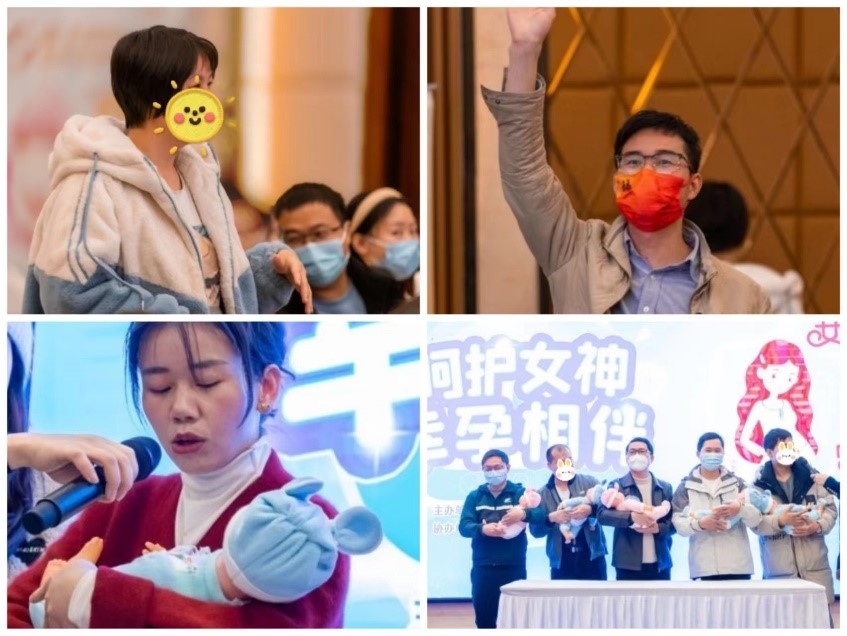 专家讲座后,准爸爸们闪亮登场进行换纸尿裤大赛。新手爸爸将宝宝的纸尿裤反穿和二胎爸爸的得心应手都赢得孕妈们的热烈掌声。护士长唐琴示范更换纸尿裤、抱新生儿手势和与宝宝沟通等技巧,大家纷纷表示受益匪浅。同时为踊跃参与互动的家庭赠送由湘雅三医院孕产育专家作为主编团队编写的《孕育小红书》、宝宝毛巾和毯子等精美礼品。