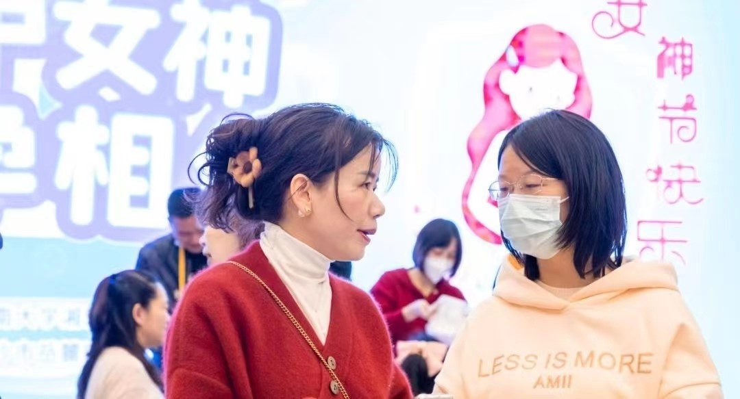 活动结束后,唐琴和产科工作人员在咨询区为准妈妈准爸爸们答疑解惑。