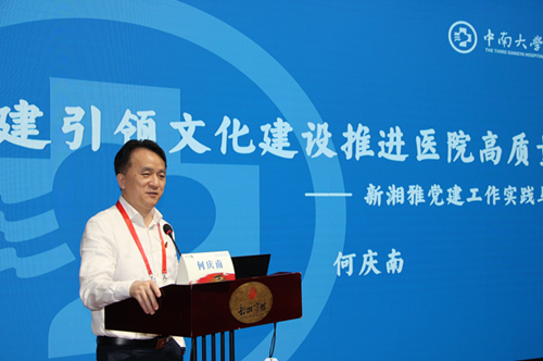 中南大学湘雅三医院党委书记何庆南以“党建引领文化建设推进医院高质量发展”为题,从新湘雅发展的基本概况、党建引领的创新与实践、高质量发展思考与前行三个方面进行了专题讲座。他指出,湘雅三医院党组织设置保障、创新党建工作方法促进党建工作与业务工作融合,形成了党建融合工作品牌。他讲述了新湘雅发展路径:从卓越到超越,坚持问题导向、结果导向、目标导向,做决策、抓落实、求实效。