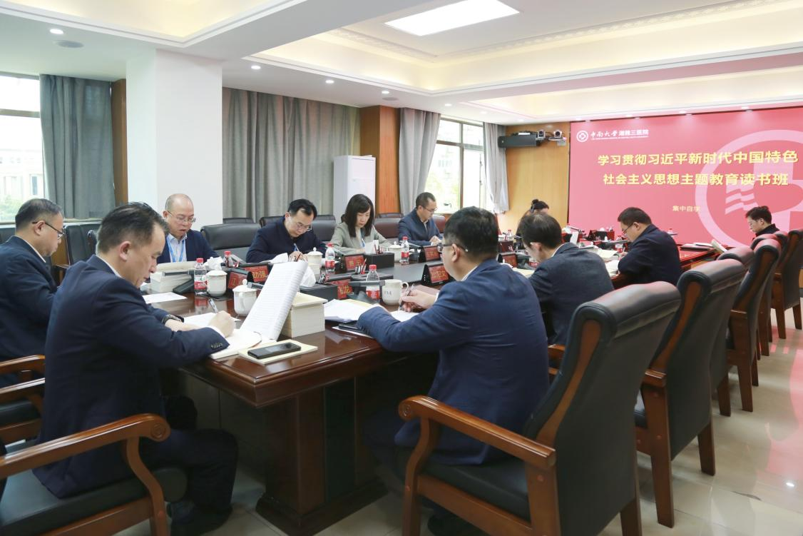 4月26日上午8点半至12点,中南大学湘雅三医院党委理论学习中心组在综合楼一会议室开展学习贯彻习近平新时代中国特色社会主义思想主题教育(以下简称主题教育)读书班4月专题集中学习。中南大学主题教育第三指导组组长、党委党校常务副校长、组织部副部长赵永正同志和第三指导组成员、党委党校正科级干事李声同志出席,医院党委书记何庆南主持会议,全体在院院领导、党群和相关职能部门负责人参加学习。