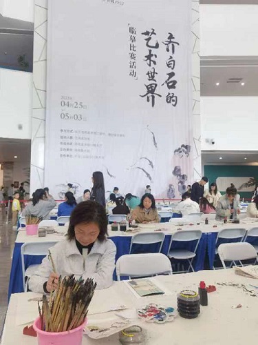 老同志们共同欣赏探讨了齐白石先生各时期的艺术作品,对现代科技引入展馆动静结合、精彩绝伦的展出内容纷纷赞叹,更为大师长达80余年的艺术生涯和高深的艺术造诣所折服。同时,老同志们用手机拍下很多作品绘画的细节,准备回家再慢慢细品。部分老师还参加了举办方组织的现场书画临摹比赛,得到了老师们的极力赞扬,展现了新湘雅老同志们积极向上、敢于亮剑、热爱生活的精神风貌。