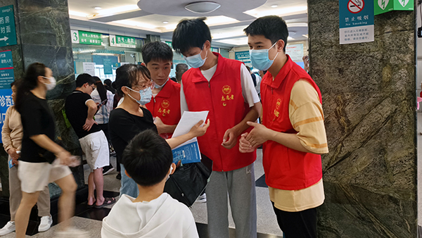活动结束后,参加活动的罗同学表示,走出校门接触了同为为人民服务的医生行业,虽然志愿服务的只是一小部分,但是体会到了这份工作的辛苦;医生护士们的热情与亲切也鼓励着我以饱满的姿态和热忱的态度回应每一位来询问或需求帮助的病人,总得来说感觉这一次的志愿服务虽然累但拓展了视野,也让表达和交流的水平更上一层楼。苏嘉颖同学:本次志愿活动,我们作为志愿者帮助了他人的同时也是在传递爱心。
