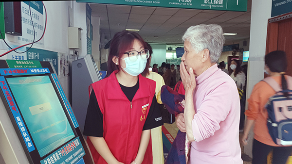 活动当天,前来就医的众多老年患者在志愿者们的指引帮助下,顺利完成就医流程,包括:排队、候诊、检查、取药等。志愿者们不仅提供了物质上的帮助,还为老年患者提供了精神上的支持和安慰。同时,在志愿服务期间,志愿者严格遵守活动要求,保障老年人隐私,在需征得老人同意后才陪同患者共同进入诊室。