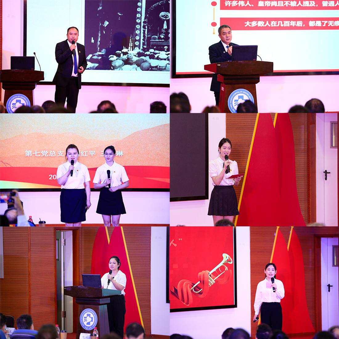 当85岁还在住院的刘浔阳老院长带着留置针走上讲台的那一刻,全场肃然起敬,响起热烈的掌声。他以“革命人永远是年轻”为题,从理论创新、方向选择和“舍得精神”三个方面讲述了新湘雅老党员们的永葆青春、初心不变的答案,他用慷慨激昂的语调讲述着新湘雅老党员们的坚守与当担,引起全场观众的共情和感动。