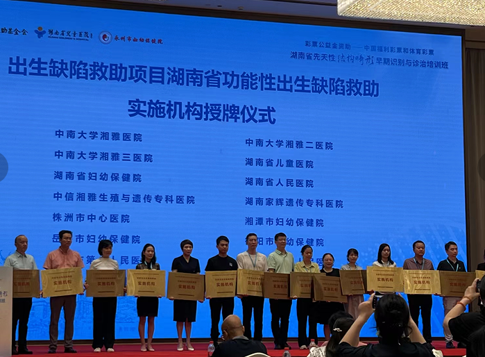 近日,“2023年出生缺陷救助项目-湖南省先天性结构畸形早期识别与诊治培训班”在永州举行。会议由中国出生缺陷干预救助基金会主办,湖南省儿童医院和湖南省妇幼保健院与优生优育协会先天畸形干预专业委员会联合承办,会上为11家医疗机构颁发了“先天性结构畸形救助实施机构”牌匾,为15家医疗机构颁发了“功能性出生缺陷救助实施机构”牌匾,中南大学湘雅三医院入选湖南省功能性出生缺陷救助实施机构。