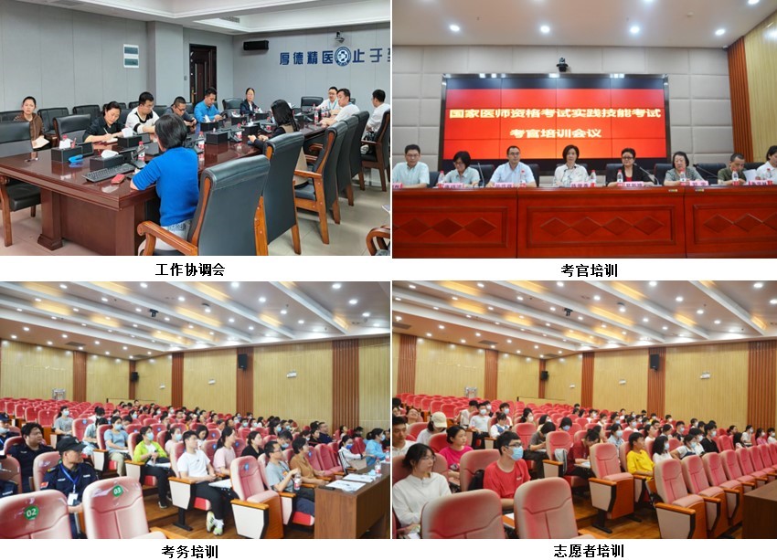湘雅三医院高度重视考务组织工作。5月8日,曹科副院长组织相关部门负责人召开协调会议,对人员抽调、安全保密、纪律监督、应急预案、后勤保障等工作进行了周密部署。在相关部门大力支持下,临床技能训练中心牵头制定工作方案、岗位职责和岗位标准操作流程,组织选聘考官、招募考务和志愿者,认真落实各项准备工作。5月28日完成考官培训,孙传政副院长出席并讲话。5月31日至6月2日分批对考务人员、志愿者进行岗前培训和模拟演练,以保证考试顺利进行。