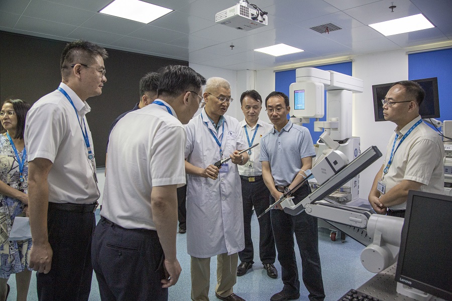 7月5日,国家卫生健康委财务司一级巡视员刘魁、二级巡视员王辉、资产装备处处长韩冰一行5人来中南大学湘雅三医院开展大型医用设备配置管理专项调研工作,湖南省卫生健康委财务处处长彭玲陪同。中南大学湘雅三医院党委书记何庆南,党委副书记、院长江泓,党委委员、总会计师费云,党委委员、副院长朱利勇,以及国产机器人项目负责人朱晒红教授、相关职能部门负责人等参加。