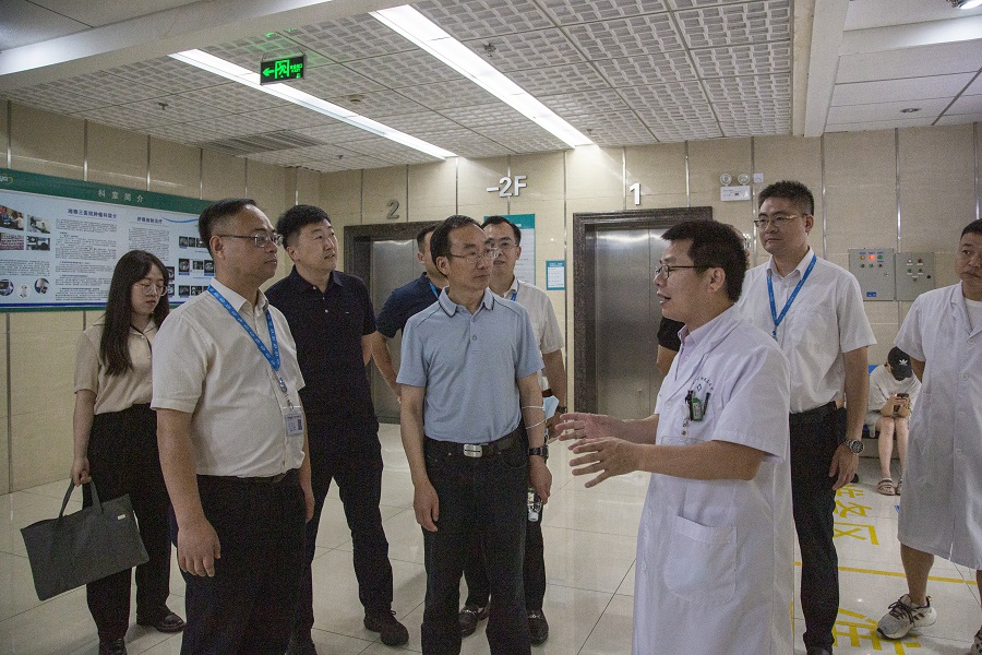 刘魁巡视员一行在医院人员的陪同下对新湘雅医学研究与转化中心、放疗中心、核医学科等进行了实地考察。