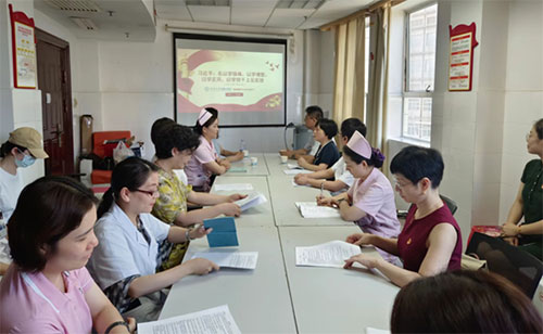 党课活动现场学习氛围浓厚、气氛热烈。消化营养科党支部书记、消化内科主任王晓艳发言表态,支部将按照“学思想、强党性、重实践、建新功”的总要求,不断剖析学科发展面临的主要问题,并制定相关举措,坚持目标导向和问题导向相统一,不断把主题教育引向深入。第四党总支书记孙慧蓉作党课总结并提出殷切期望,希望在支部书记王晓艳的带领下,大家继续强化责任担当,团结一心,守正创新,凝心聚力推进学科发展,为新湘雅建设作出应有的积极贡献。