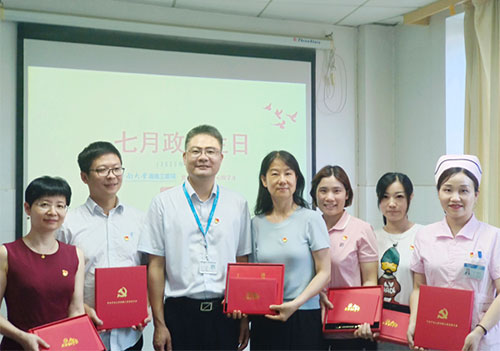 党课结束后,朱利勇副院长为7月份入党的党员过政治生日,颁发生日贺卡和党员笔记本,作为对党员同志的激励。党员同志们纷纷表示,坚决听党话、跟党走,为医院消化内科、营养科发展添砖加瓦。
