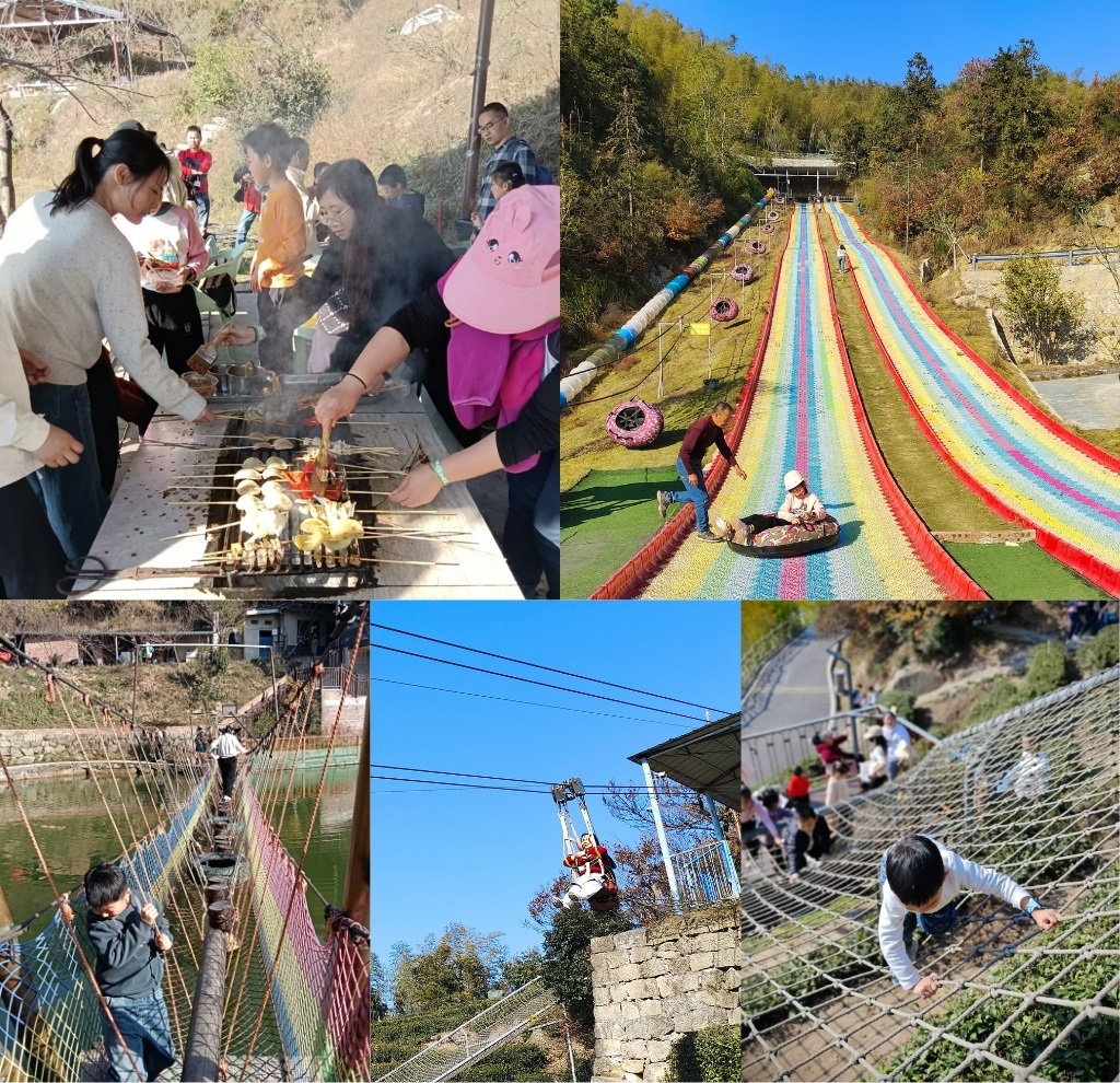 登山比赛后,职工们来到星空茶园开展拓展活动,挑战高空滑索、彩虹滑道、极限管滑和攀爬网。星空茶园茶树成垄,小径蜿蜒穿梭其间,碧空与茶海相映,欢乐与挑战并存。错落有致的茶垄成为趣味“迷宫”,尽显“向新而行,以质致远”的追求和团队协作的力量。