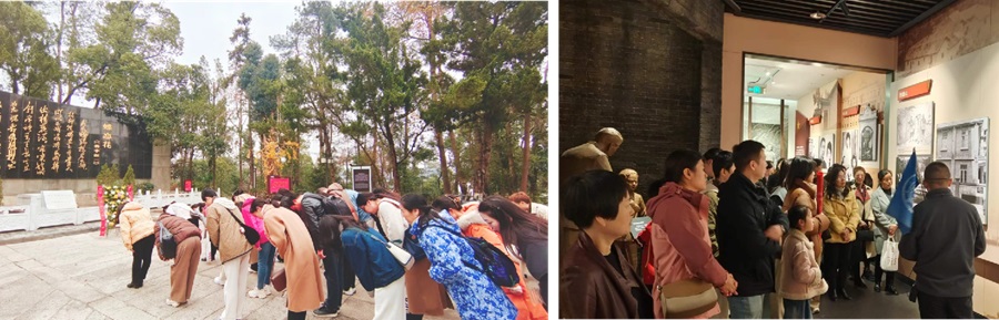在杨开慧烈士陵园,党员们怀着崇敬之情敬献花篮,默哀、鞠躬,绕墓瞻仰,并重温入党誓词,深刻感悟杨开慧烈士短暂而伟大的一生。在讲解员的生动讲述下,杨开慧烈士的英勇事迹和伟大的红色母爱精神深深触动着每一位党员,红色文化进一步深入人心。此次活动不仅是对革命先烈的深切缅怀,更是对党员们的鞭策与激励,鼓舞他们在新时代传承和弘扬革命精神,以更坚定的信念与昂扬的斗志投身医院建设,为实现医院“12345”发展目标奋力拼搏。