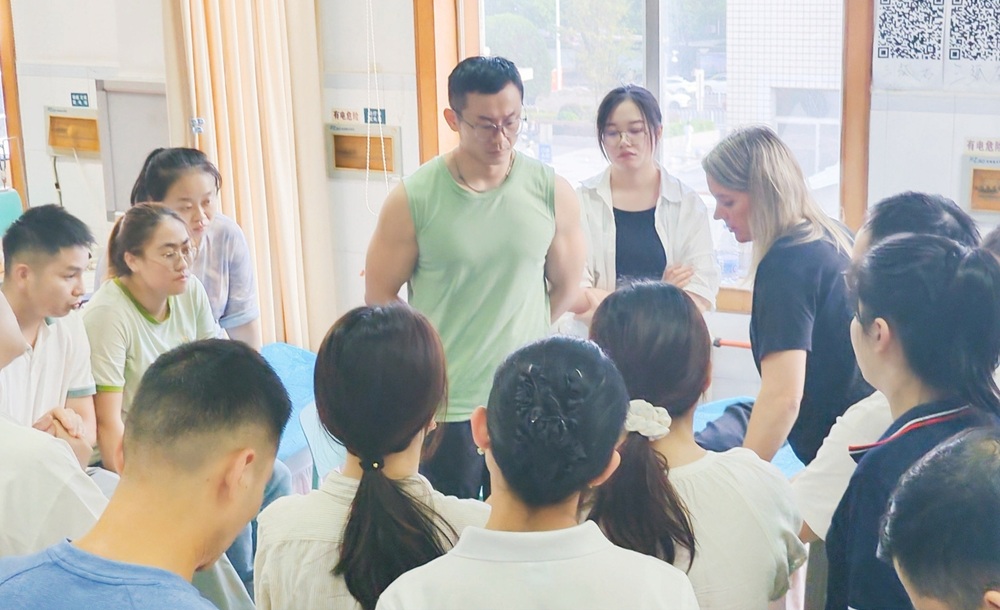 在为期三天的培训课程中,Zuzana Suzan 讲师充分结合自身丰富的临床案例,以深入浅出的方式系统讲解DNS技术的理论基础与实践应用。从技术的起源与发展逻辑,到不同病症对应的评估维度,再到个性化治疗方案的制定技巧,讲师逐一拆解专业难点,让学员们清晰掌握技术核心。课程尤其注重理论与实操的深度结合,每天下午设置现场演示环节,讲师针对常见的腰痛康复、产后盆底肌功能恢复、运动损伤修复等案例,亲自示范评估流程与治疗动作;随后分组练习环节,学员们两两结对,在讲师与翻译的巡回指导下,模拟临床场景开展实操训练,遇到疑问随时提问,通过即时答疑互动,及时纠正操作偏差,深化对技术要点的理解。