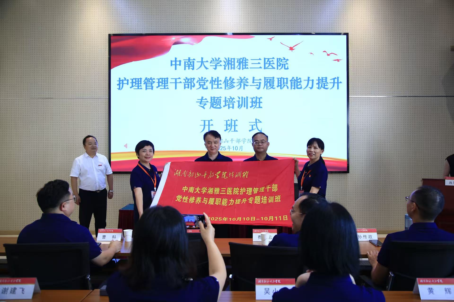 为全面提升护理管理干部的党性修养与履职能力,10月10日至11日,中南大学湘雅三医院党委办公室与护理部联合在湖南韶山干部学院成功举办“护理管理干部党性修养与履职能力提升专题培训班”。全院护理部、护理教研室成员及各病区护士长、副护士长共计85人参加培训。本次培训以“传承韶山精神,强化实干担当,全面提升护理管理干部党性修养与履职能力”为主题,通过专题教学、现场体验、理论授课与实践研讨相结合的方式,将红色基因传承与护理管理实战需求深度融合。