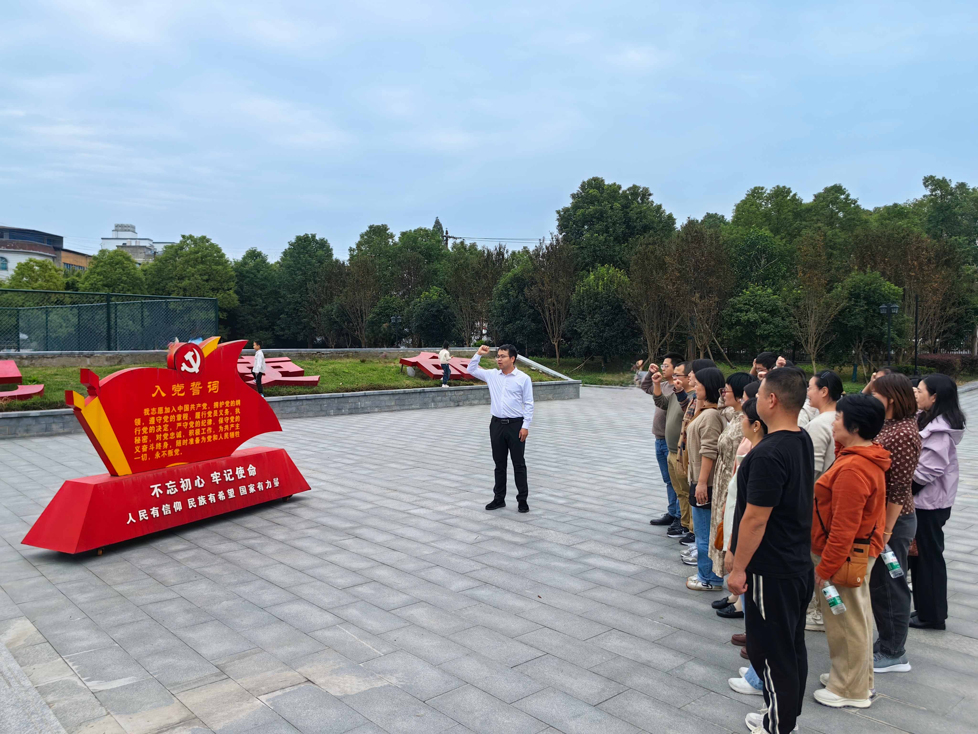 活动首日,团队首先抵达湘鄂西革命根据地旧址——瞿家湾明清古镇。行走在青石板铺就的老街,党员们参观了湘鄂西苏维埃省政府旧址、中共中央湘鄂西分局、湘鄂西革命军事委员会等多处革命遗址。随后,团队怀着无比崇敬的心情,来到瞿家湾烈士陵园。在庄严肃穆的氛围中,全体党员整齐列队,向长眠于此的革命先烈敬献花篮、默哀致敬。在巍峨的革命烈士纪念碑下,面对鲜红的党旗,党员们重温入党誓词,铿锵有力的誓言回荡在陵园上空,表达了继承先烈遗志、为党和人民的事业奋斗终身的坚定决心。