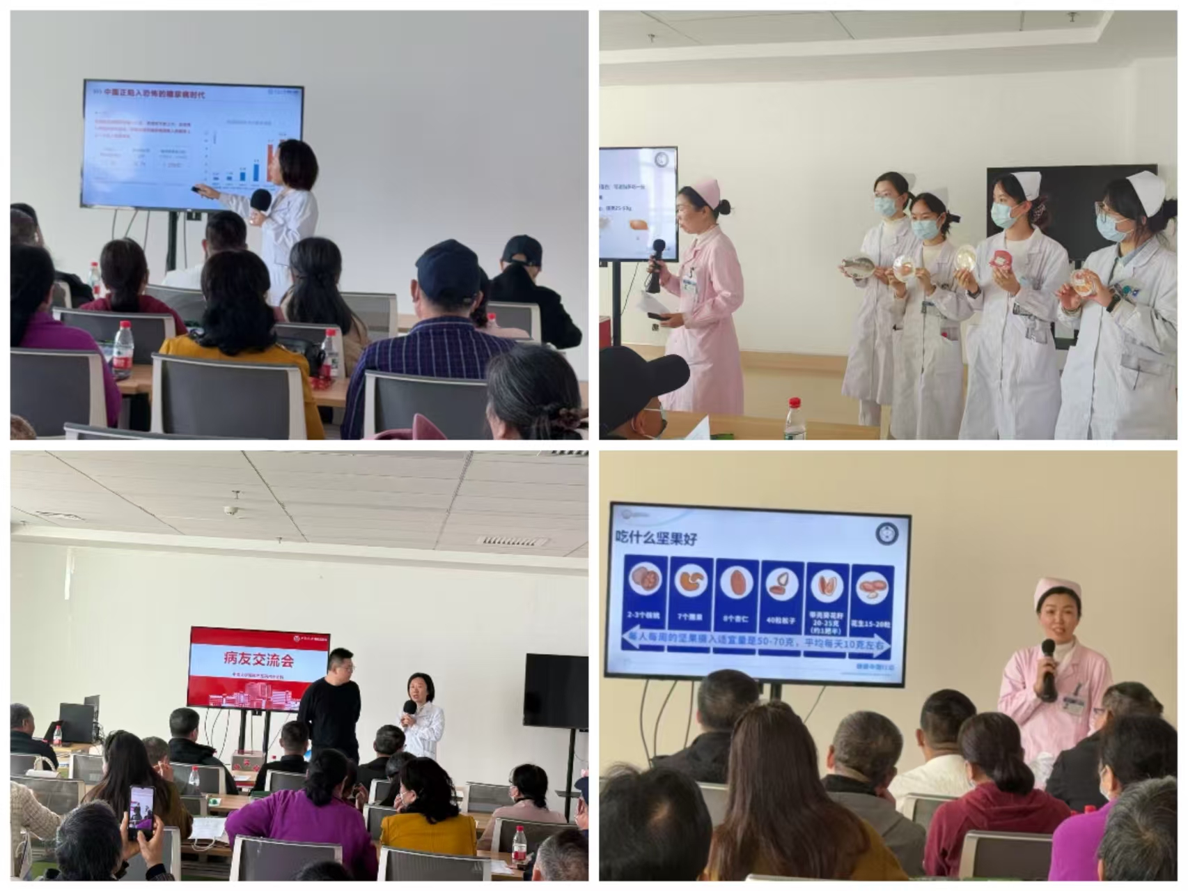 在专题讲座环节,内分泌科主任金萍以《探索2型糖尿病缓解之路》为题,系统阐述了2型糖尿病缓解的科学依据与实践路径,为患者带来了前沿的诊疗资讯与康复信心。贺娟主管护师聚焦于日常管理,分享了《糖尿病患者饮食管理技巧》,通过生动的实例讲解了如何通过合理膳食有效控制血糖,提升生活质量。