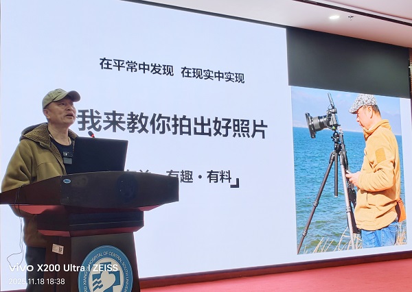 为提升会员摄影专业素养,解锁人像摄影实战技巧,11月18日晚,中南大学湘雅三医院新湘雅摄影协会特邀知名人像摄影老师蒋子彬,在外科楼二楼开展“聚焦人文——定格感动”第一讲专题讲座。近50名协会会员齐聚一堂,沉浸式探寻光影奥秘,学习构图核心技巧。
