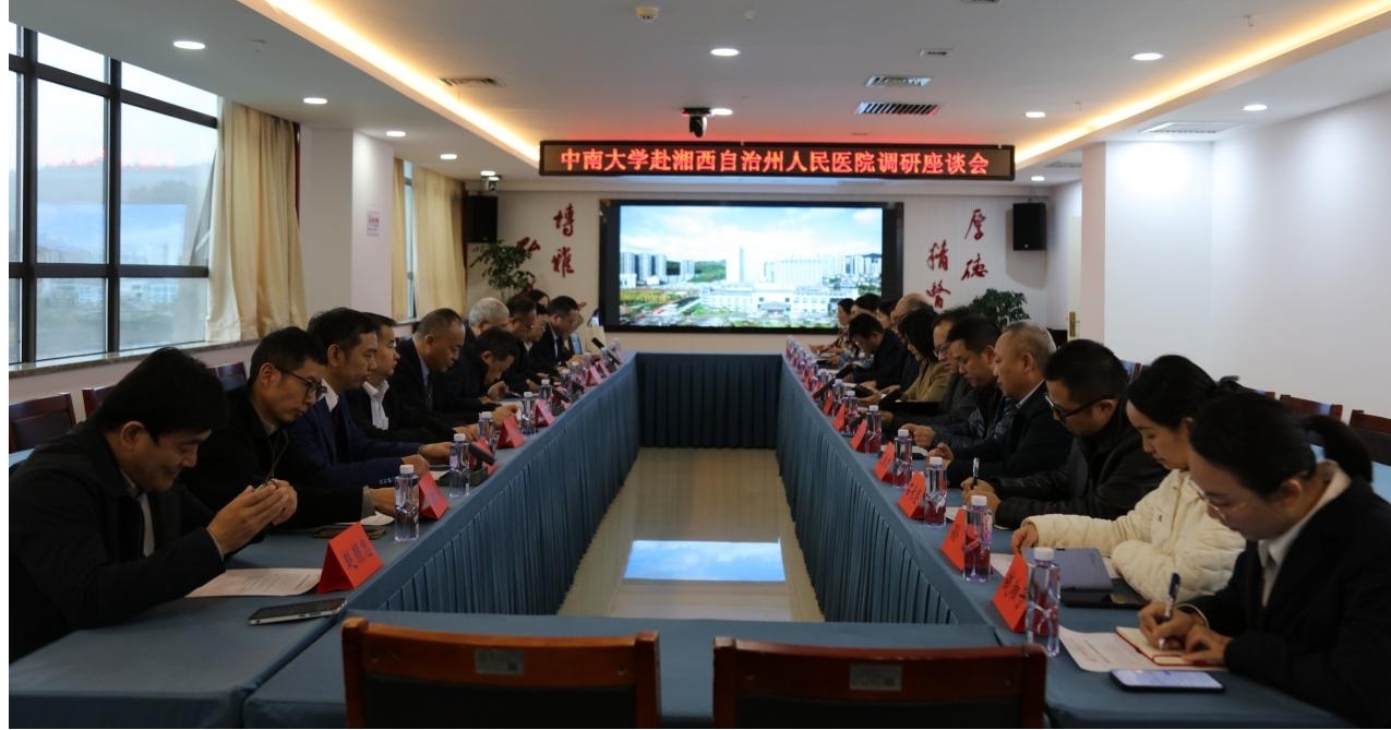11月17日下午,中南大学党委常委、常务副校长、湘雅医学院院长陈翔,中南大学湘雅三医院党委副书记、院长江泓一行专程赴湘西自治州人民医院,开展结对帮扶工作调研。湖南省卫生健康委二级调研员谢爱清,湘西自治州政协副主席陈文君及州委相关领导,湘西自治州人民医院(以下简称“州医院”)副院长宋奎,中南大学湘雅三医院结对帮扶队长、州医院执行副院长范自力等州医院领导出席,湘雅三医院支援湘西自治州人民医院临时党支部全体成员参会。会议由中南大学医院管理处处长彭仕芳主持。