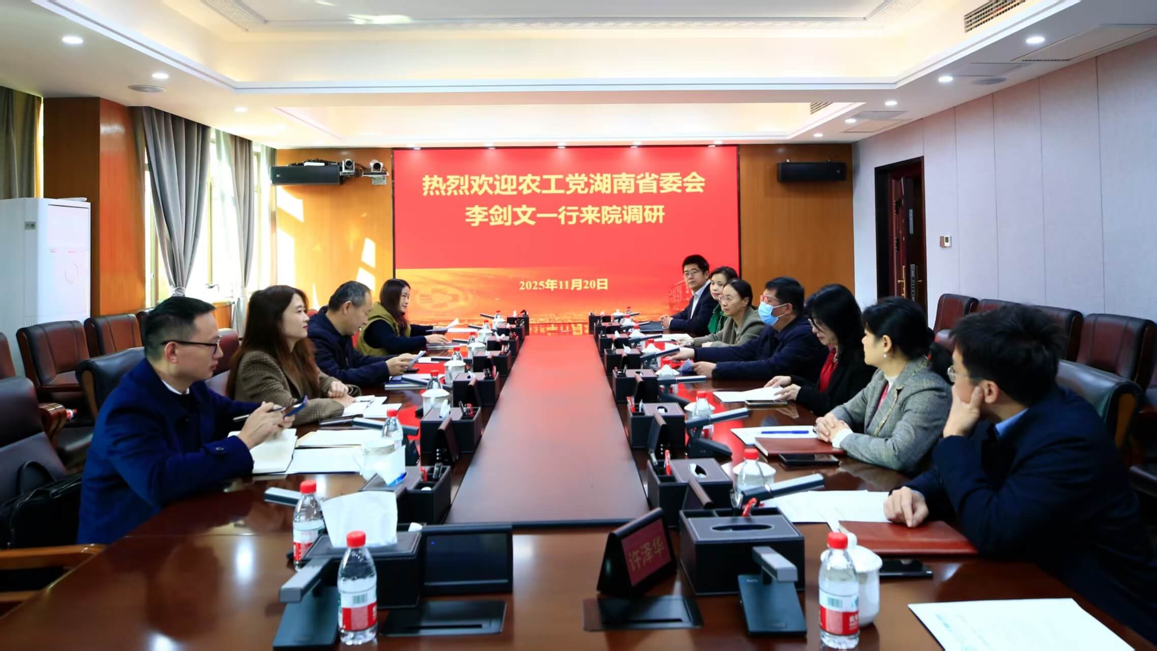 11月20日上午,中国农工民主党湖南省委会专职副主委李剑文率组织处副处长唐莎、四级调研员石爱民、科员陈杰莅临中南大学湘雅三医院,就农工党中南大学湘雅三医院支部工作及“农工党员之家”建设情况开展专题调研。医院党委副书记杨飞龙、党委办公室主任许泽华,农工党中南大学湘雅三医院支部主委王芬,骨干党员姚晨姣、李莹、刘佳、吕卫刚等参加座谈并陪同调研。