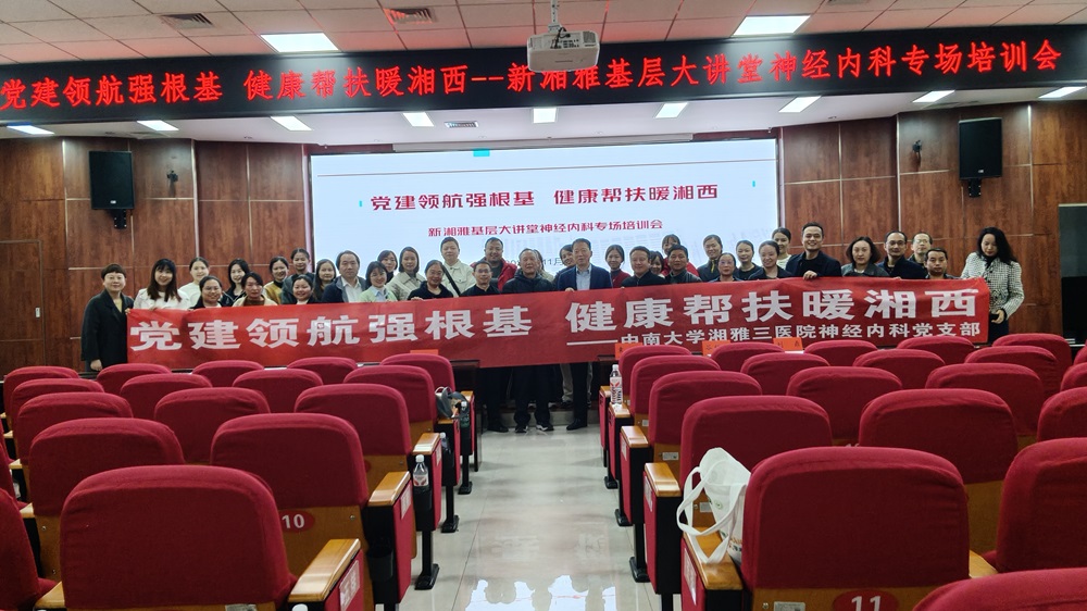 11月29日至30日,中南大学湘雅三医院神经内科党支部赴湘西土家族苗族自治州人民医院,开展以“党建领航强根基,健康帮扶暖湘西”为主题的学术交流与党建主题活动。活动在神经内科主任张如旭的指导下,由本年度的对口支援专家郑文副教授统筹联络。由宋治教授带队,侯德仁教授、范学军教授、袁毅教授、刘鼎副教授、谷绍娟副教授等专家组成的医护团队20余人,利用周末时间在当地举办了“新湘雅基层大讲堂神经内科专场培训会”。