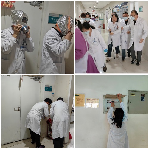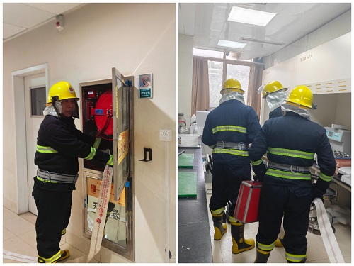 同时,消防广播系统启动,提醒周边区域人员注意安全。医院义务消防队接警后迅速抵达现场,协同完成“火情”扑灭与现场排查。义务消防队员们从接到报警到抵达现场仅用了3分钟,与病理科人员的配合非常默契。科室的初期处置为义务消防队扑救争取了宝贵时间。