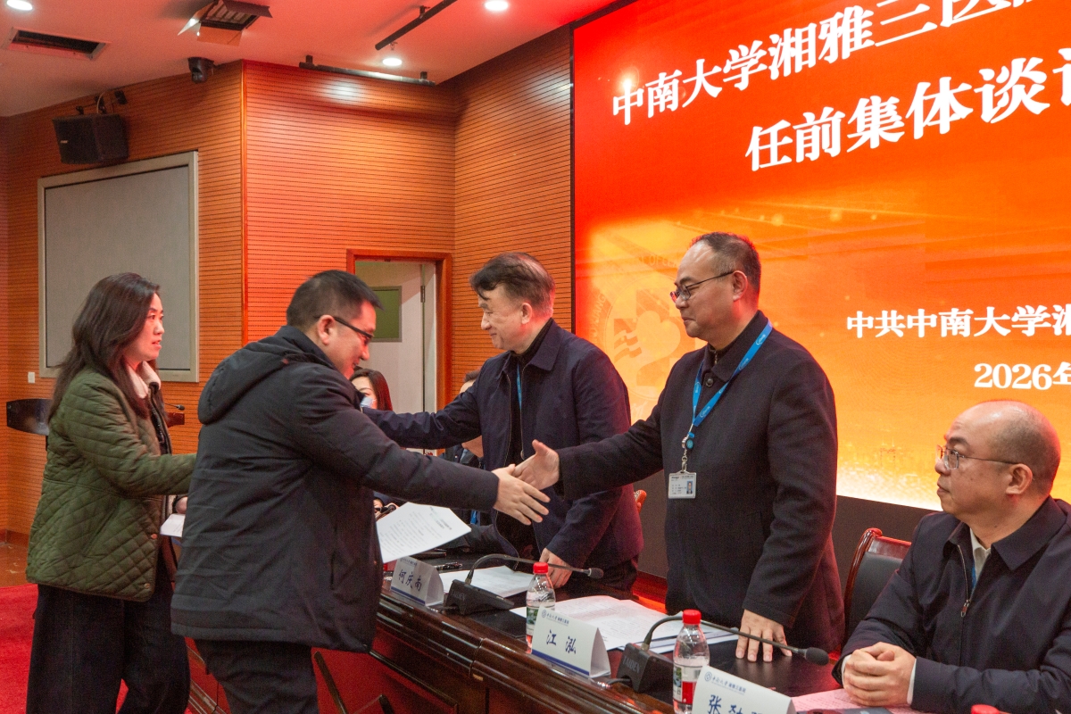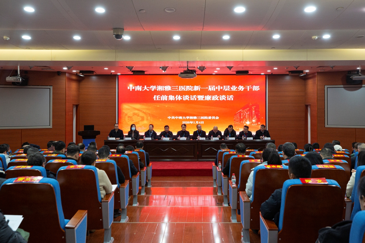 2026年1月4日,中南大学湘雅三医院举行新任中层业务干部任前集体谈话暨廉政谈话。全体院领导出席会议,会议由党委副书记杨飞龙主持。