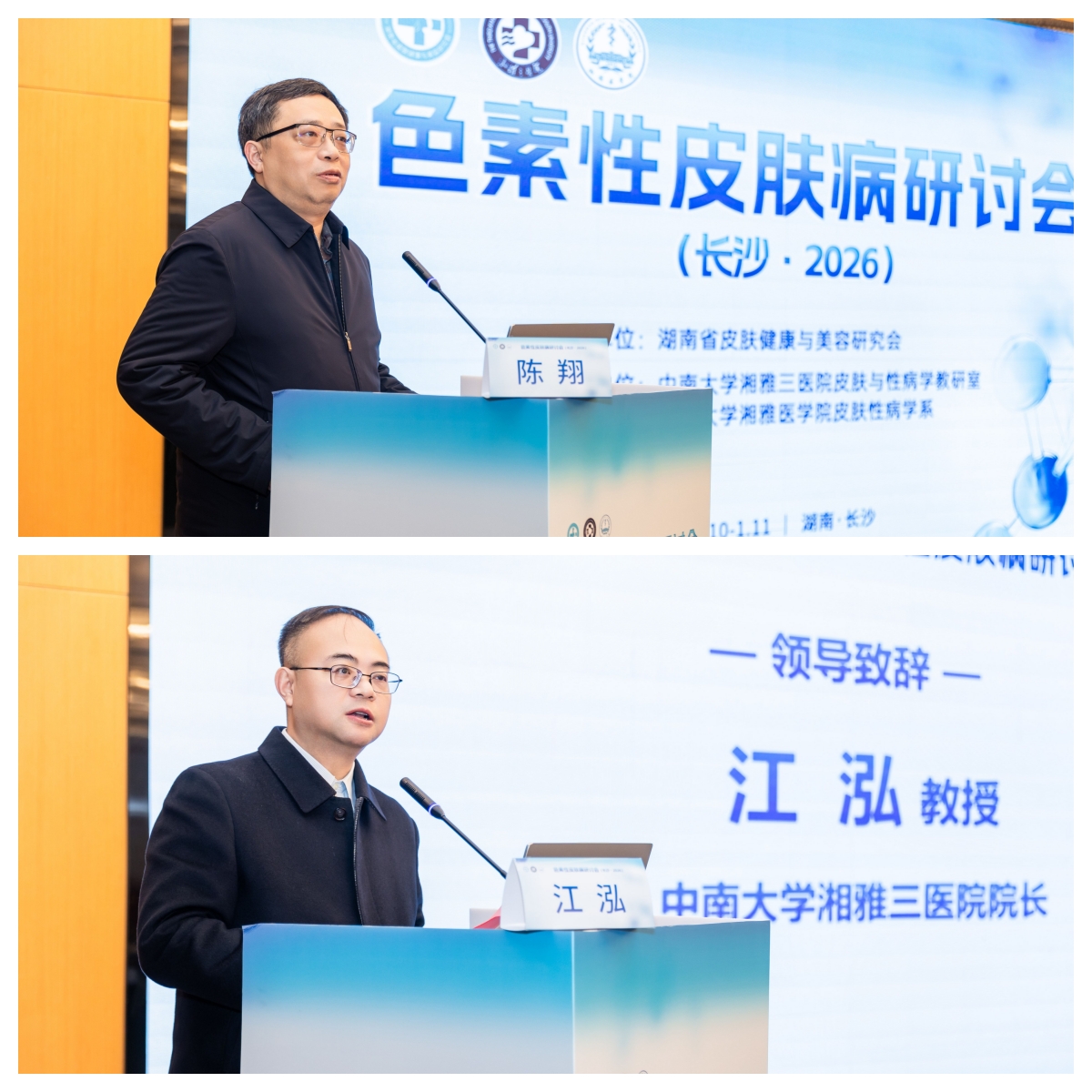 中南大学党委常委、常务副校长、湘雅医学院院长陈翔,中南大学湘雅三医院院长江泓先后致辞,寄语与会专家携手共进,为推动色素性皮肤病诊疗水平提升贡献智慧。