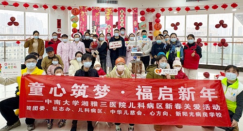 新春将至,暖意融融。为让住院患儿在病房里感受节日氛围,2月10日下午,中南大学湘雅三医院儿科病区联合院团委、社志办,携手北京新阳光病房学校、中华儿慈会、长沙市芙蓉区心方向儿童发展中心等公益组织,在内科楼七楼共同举办了“童心筑梦福启新年”春节病房关爱暨健康宣教活动。岳阳职业技术学院护理实习学生全程参与病房互动与家属宣教,在实习收官阶段以专业服务和人文陪伴为患儿送上新春祝福。