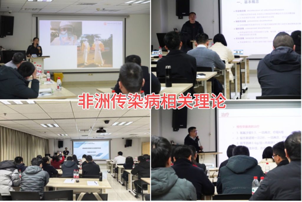 24日上午,中南大学湘雅二医院感染科周宁教授与长沙市疾病预防控制中心食品安全与环境卫生科科长张恒分别就“非洲常见传染病临床诊疗”与“传染病相关消毒规范”进行了深入浅出的讲解。中南大学湘雅三医院医院感染控制中心周鹏程副主任详细解析了“传染病标准预防与分级防护体系”,为队员们构建了系统的防护思维框架。25日上午,中南大学湘雅医院感染病科黄燕主任重点讲授了“非洲烈性传染病临床诊疗”,张恒进一步深入讲解了“非洲烈性传染病防控”及应急处置策略,针对性强,直击援外工作痛点。