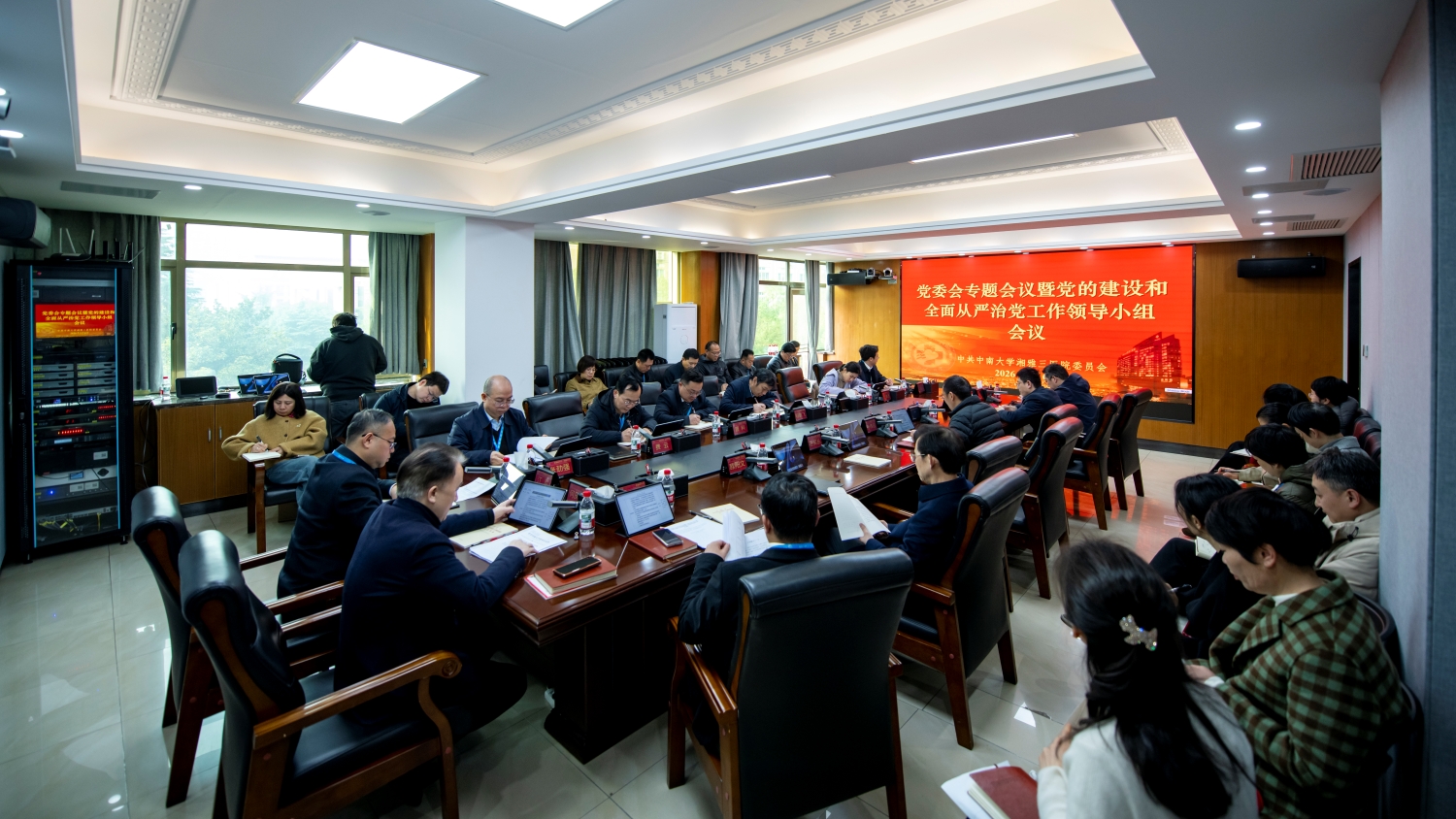 3月6日,中南大学湘雅三医院在综合楼一会议室召开党委专题会议暨党的建设和全面从严治党工作领导小组会议,启动部署树立和践行正确政绩观学习教育。全体党委委员、医院党的建设和全面从严治党工作领导小组成员参加会议。党委书记何庆南主持会议并讲话。