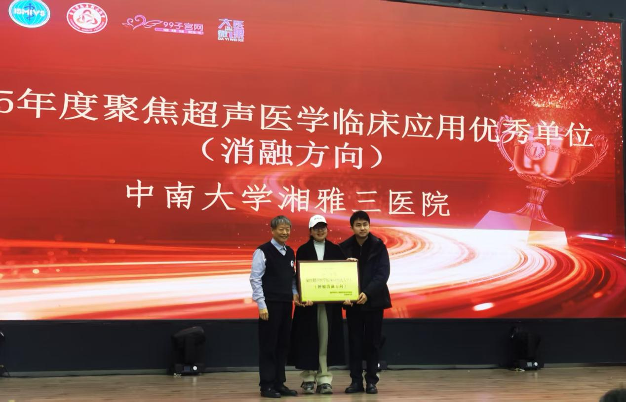 3月7日,由重庆医科大学超声医学工程国家重点实验室主办的“2025年度全国聚焦超声医学临床应用优秀单位及个人表彰大会”在重庆隆重举行。中南大学湘雅三医院凭借在该领域的卓越贡献与突出成就,一举斩获“2025年度聚焦超声医学临床应用优秀单位奖”“2025年度聚焦超声医学临床科研优秀单位奖”两项团队大奖。同时,该院妇科朱小刚主治医生荣获“2025年度聚焦超声领域自媒体科普卓越人物奖”。