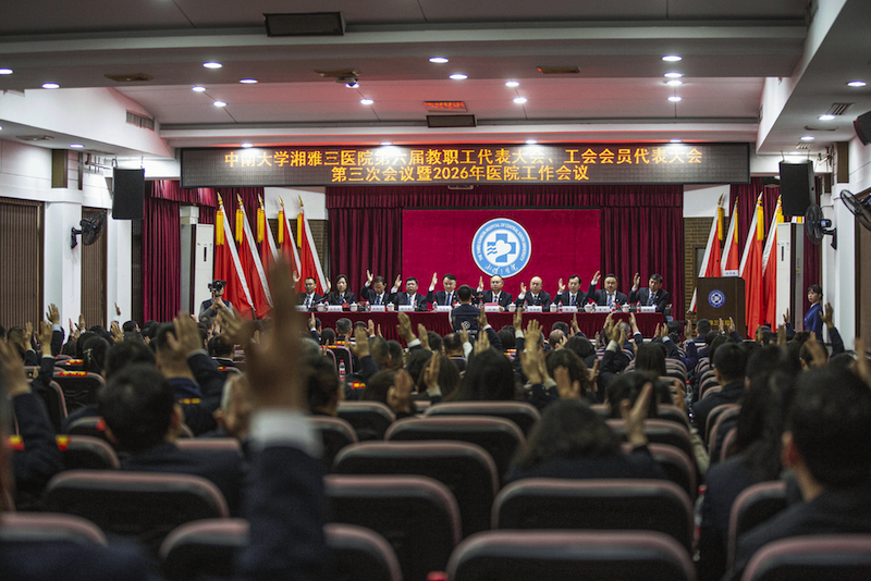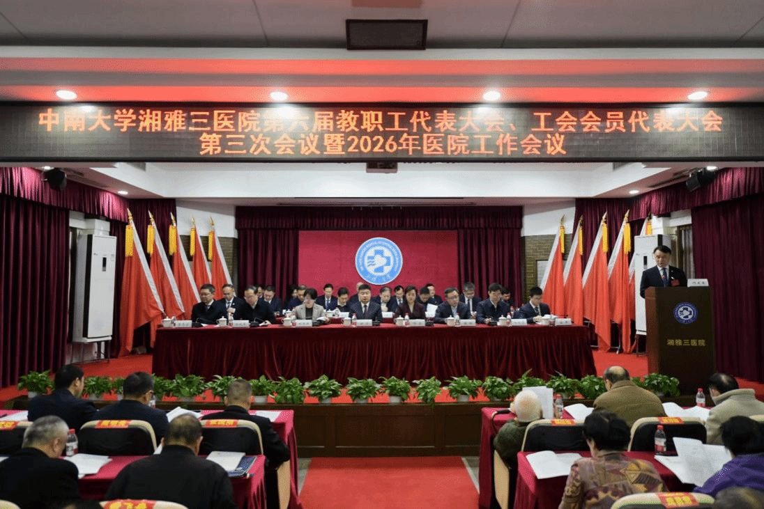 3月21日,中南大学湘雅三医院第六届三次教职工、工会会员代表大会暨2026年医院工作会议在急诊楼五楼报告厅召开。大会分两个阶段进行,第一阶段为第六届三次教职工代表大会暨2026年医院工作会议,第二阶段为第六届三次工会会员代表大会。