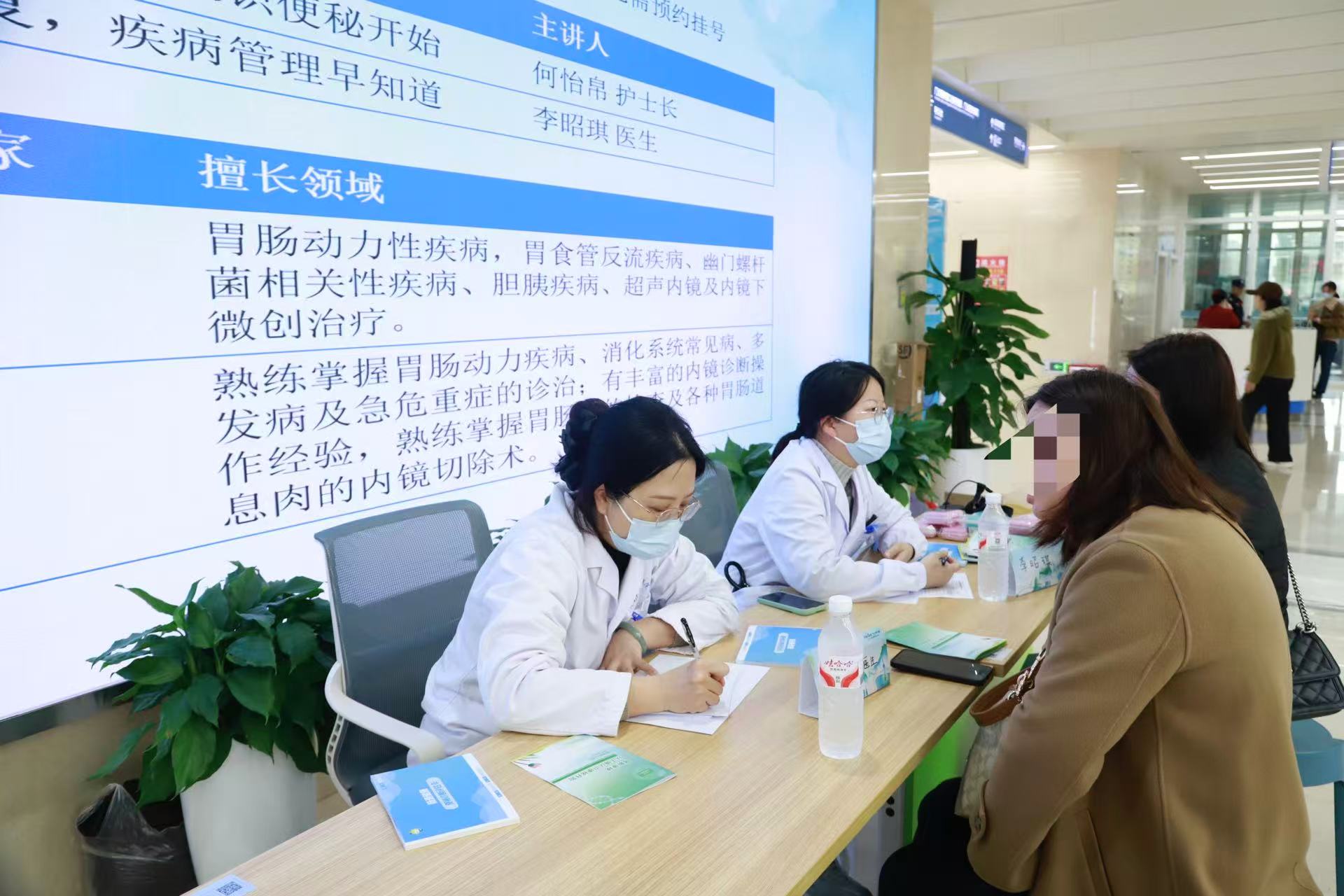 讲座内容通俗易懂、干货满满,现场群众认真聆听、积极提问。专家团队逐一解答患者关于饮食、运动、内镜筛查时机、用药等问题,为有内镜筛查需求的市民提供个性化就诊指导。同期开展的便秘专场义诊现场人气高涨,医护团队陈雄副主任医生、李昭琪主治医师为市民提供免费咨询、病情评估、用药指导与个体化调理方案。对老年、长期服药、有肠道疾病家族史等便秘高发及内镜筛查高危人群进行重点排查与宣教,详细告知内镜筛查的必要性、检查流程及注意事项,引导有异常症状的市民及时到消化内科完成内镜检查,做到早发现、早诊断、早治疗。