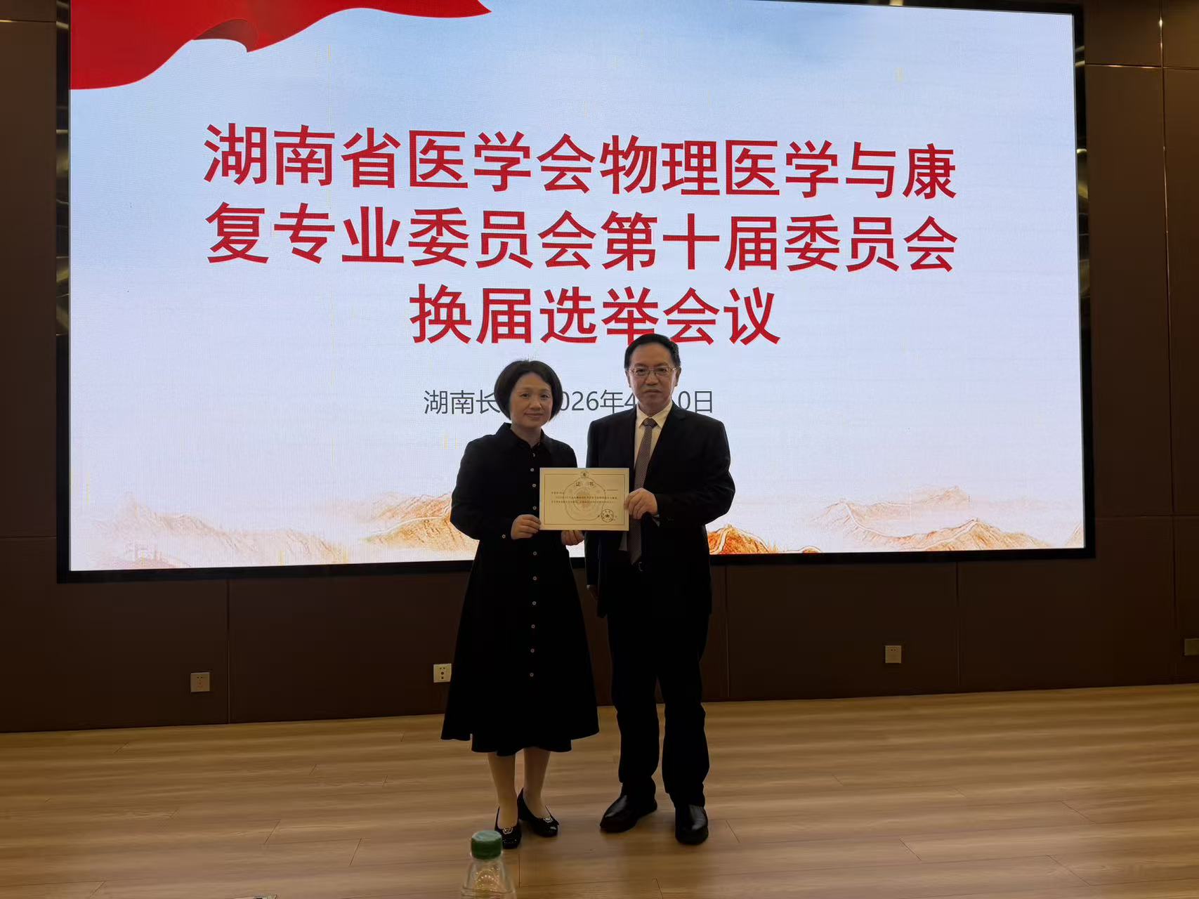 4月10日,湖南省医学会物理医学与康复专业委员会第十届委员会换届选举会议在长沙召开,中南大学湘雅三医院康复医学科科室主任李旭红教授当选为候任主任委员。此次换届选举的当选,是对李旭红教授在康复医学领域卓越贡献的高度认可,也充分彰显了湘雅三医院康复医学学科在李旭红教授与科室团队共同推动下不断攀升的学术影响力与行业地位。