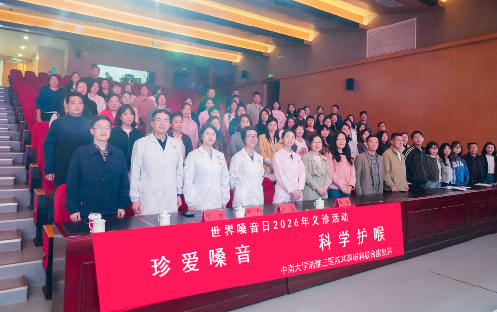 2026年4月16日是第24个世界嗓音日,今年主题为“Caring for your voice(呵护你的嗓音)”。为进一步提升群众嗓音健康意识,普及科学护嗓知识,中南大学湘雅三医院耳鼻咽喉头颈外科联合康复医学科成功举办第六次“蓝橙丝带” 嗓音健康公益活动。活动以 “门诊公益义诊+校园健康科普” 双线开展,将优质医疗服务与健康科学知识送到群众身边。