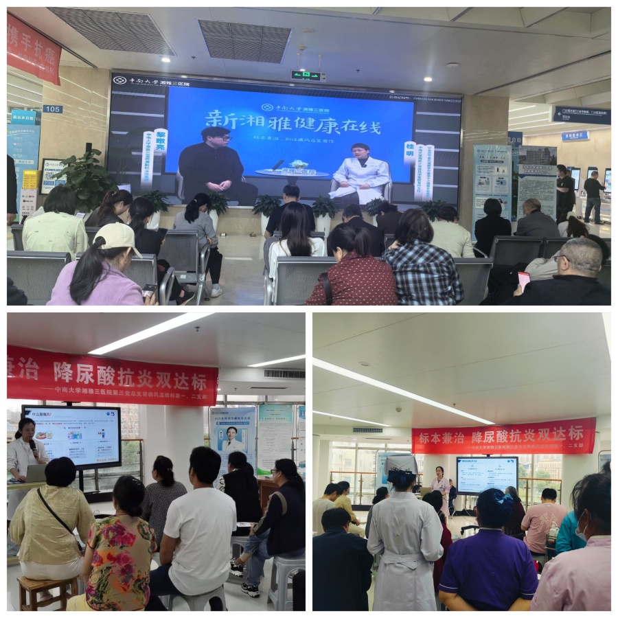 除了专业问诊,医护人员还为大家提供免费血尿酸快速检测、免费血压测量服务,不用跑诊室、不用长时间等待,就能轻松了解自身健康状况,做到早知晓、早预防、早调理。在痛风日来临之际,“新湘雅健康在线”直播室里主任医师桂明进行了关于痛风相关知识的科普直播。肾病风湿病科住院部,分别由副主任医师唐又周、主管护师周钰琼带来了两场生动的相关知识讲座科普,现场还准备了通俗易懂的痛风防治科普手册,把专业的健康知识变成大家看得懂、记得住的内容,将健康理念实实在在送到每个人身边。