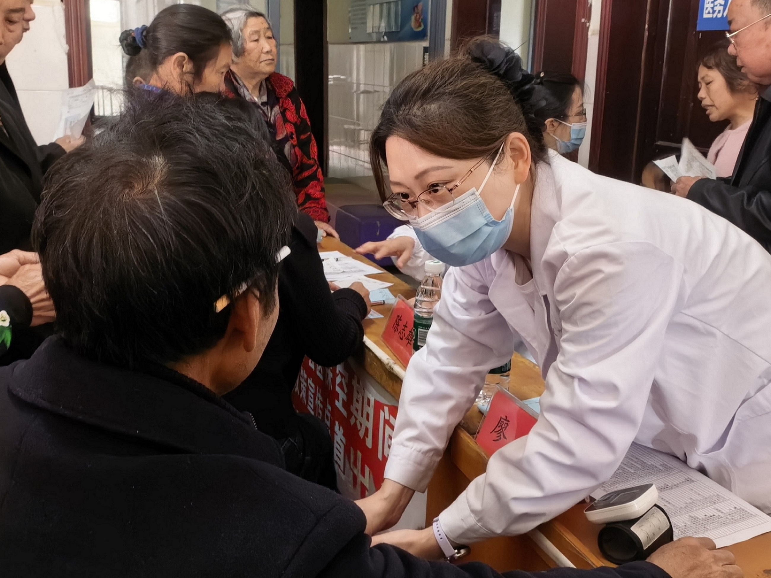 2026年4月23日,驻点帮扶团队一大早就携带血压计、血糖仪、常用药品及健康宣传资料,从江华县城出发,沿着蜿蜒崎岖的山路驱车前往大圩镇卫生院。简单布置诊疗场地后,义诊台前很快排起长队,现场气氛热烈。78岁的李奶奶拄着拐杖,颤颤巍巍地走到老年医学科陈志雄医生面前。她长期患有高血压,近期频繁感到气短。陈医生仔细为她测量血压、听诊心肺并完善心电图检查,发现老人存在服药不规律、饮食偏咸的问题。“奶奶,您腿脚不便,走路一定要慢些!降压药得像吃饭一样按时吃,血压也要定期监测,饮食上记得清淡些。”他一边耐心叮嘱,一边调整用药方案,用通俗易懂的语言讲解慢病管理知识,并特意告知陪同的村医:若调整药物后血压控制仍不理想、气短症状持续,建议引导老人到县医院系统检查。“上医治未病。”陈医生强调。除了现场诊疗,健康科普也是义诊的核心环节;“医生不仅要会治病,更要教会村民如何防病,当好健康守门人。”一位四十来岁的阿姨因经期紊乱数月前来咨询,此前一直以为是劳累所致。考虑到现场条件有限,妇科杨茜医生详细询问病史、初步诊查后,暖心建议她尽快到医院做进一步检查,以免延误病情。儿科医生孔敏则为一名生长发育迟缓的儿童提供咨询与心理疏导,量身定制了营养建议和运动方案。麻醉科廖娟医生发挥专业优势,为腰腿痛、癌痛等慢性疼痛患者缓解不适。此次义诊共接诊村民200余人次,免费发放药品价值2000余元,健康宣传资料300余份。“以前觉得湘雅专家离我们很远,没想到今天在家门口就能享受到这么优质的医疗服务。”村民刘大爷笑着说。