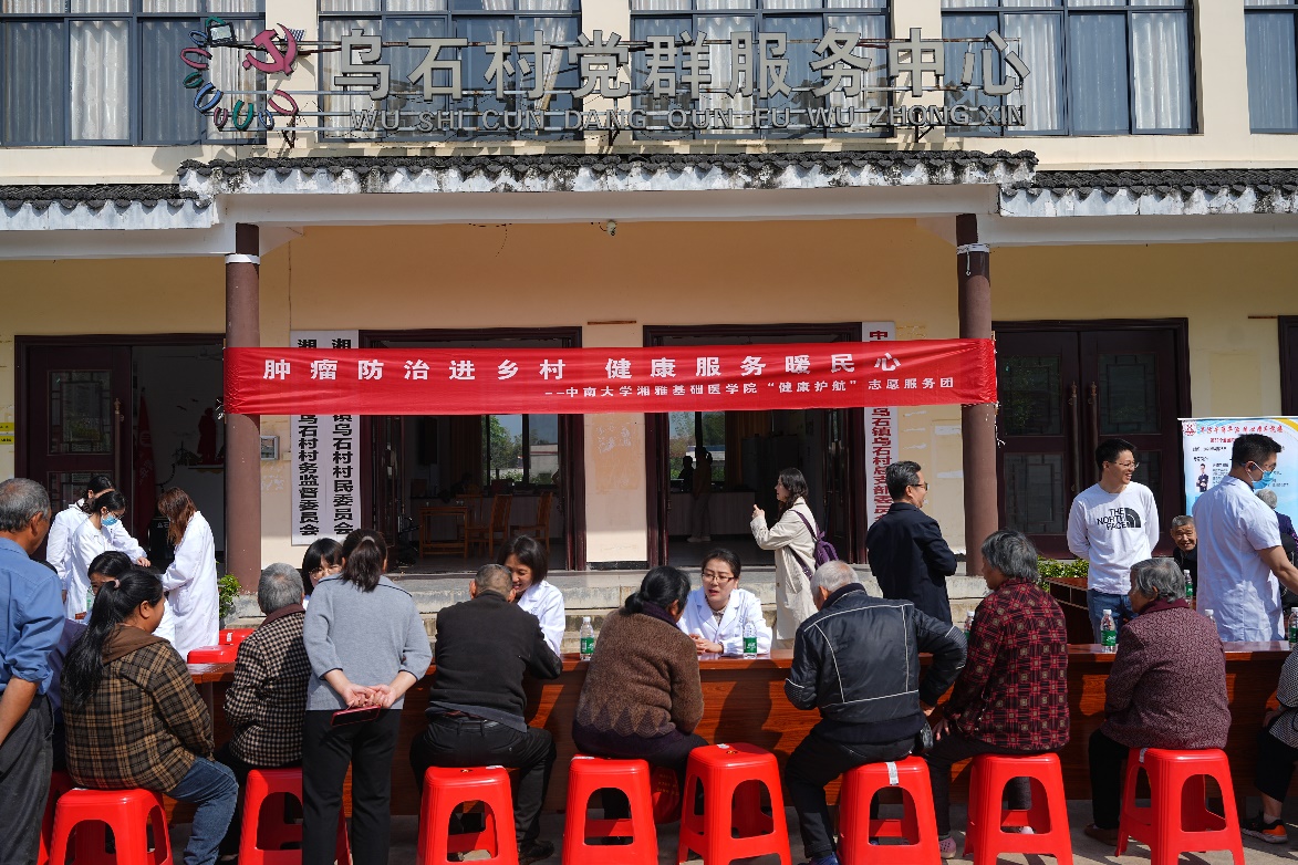 4月25日,中南大学湘雅三医院康复医学科主任李旭红教授带领康复专家团队,与湘雅基础医学院肿瘤研究所、湘雅医院、湘雅二医院专家及师生一道赴湘潭县乌石镇乌石村,开展“康复服务进乡村,防癌科普暖民心”志愿服务活动。来自湘雅义诊团队共计70余人各展所长,将三甲医院的综合康复与肿瘤防治资源送到村民家门口,以功能重建为核心,为乡村群众提供覆盖疼痛管理、慢病功能维护与肿瘤防治科普的一体化健康服务。