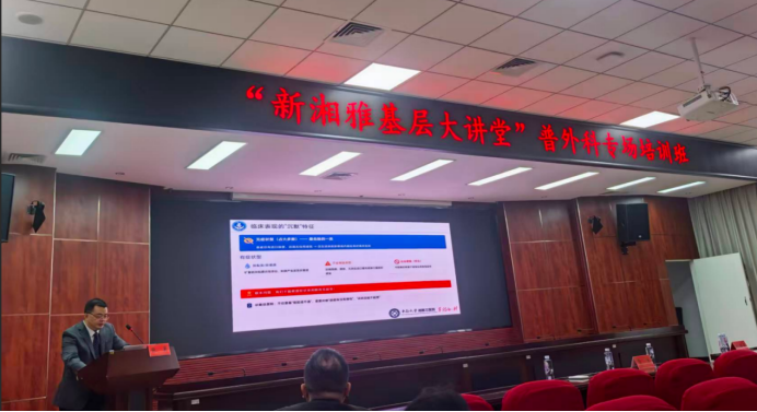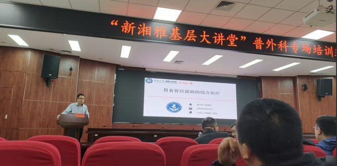 作为国家临床重点专科、湖南省胃肠疾病专科联盟主席单位,湘雅三医院胃肠外科充分发挥学科引领优势,精准对接基层临床需求,精心策划本次培训课程。培训面向全州各级医院,聚焦普外科领域诊疗难点与前沿进展,内容紧贴实际,有效激发了基层医师的学习热情。在随后的专题授课环节,三位专家围绕核心主题展开了深入讲解与分享。