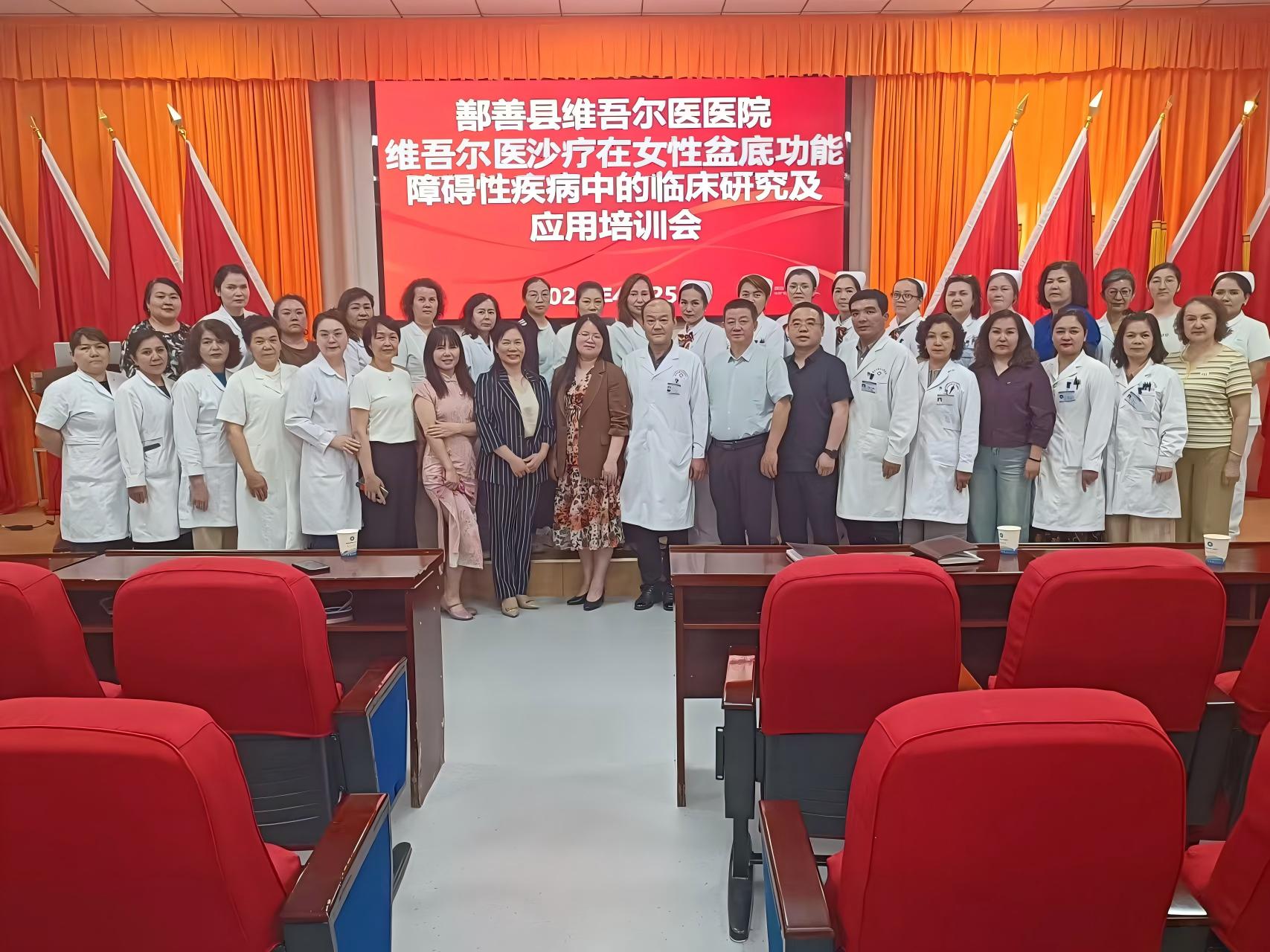会后,邓丽明副教授以“维吾尔医沙疗在女性盆底功能障碍性疾病中的临床应用规范”为主题开展专题培训,结合湘雅三医院在盆底康复领域的临床经验,系统讲解了沙疗联合现代康复技术治疗盆底疾病的适应症、禁忌症及操作要点,手把手指导当地医护人员进行实操演练,有效提升了受援医院相关科室的临床诊疗能力与科研水平。