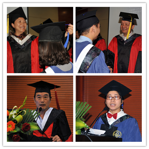 随后举行了博士、硕士学位授予仪式,院领导和导师们为毕业生进行学位授予仪式。其中有几个留学生的身影格外引人注目,他们是来自尼泊尔的毕斯努、苏贝、高伟。他们毕业后都将学成回国,“中国是我的第二故乡,感谢这里的老师和同学。”年轻的苏贝是放射科王维教授的学生,其丈夫也是留学生,在湘雅医院攻读博士。两夫妻在中国不仅收获了学位,还收获了一个活泼健康的宝宝,会场外,嗷嗷待哺的孩子不时发出咿呀学语,似乎也在庆祝妈妈今天的成绩。