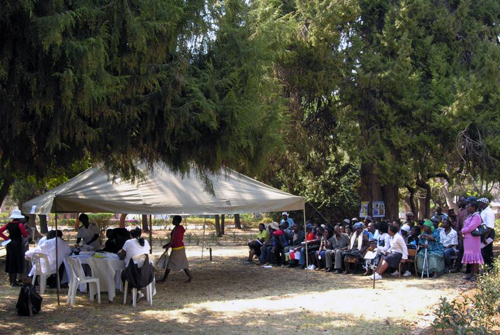 9月22日周六,中国医疗队在津巴布韦全国大型巡回义诊拉开序幕,第一站是位于津巴布韦中部省的首府Gweru市。为搞好这次大型义诊活动,医疗队一个月前就开始筹划和准备,在当地药房购买了药品和检查仪器。义诊的前一天当地的中资企业就为我们搭好了几个帐篷,分别作为导诊台、诊室和药房,诊室分为内科、普外科、泌尿外科、骨科、妇产科和儿科。津巴布韦中部省政府极为重视这次义诊活动,特意腾出市政大厅前面的草坪给医疗队扎帐篷为患者义诊。当医疗队赶到义诊现场,看到很多患者已排起了长长的队伍,翘首企盼中国专家的到来,市政大厅前也搭好了主席台。原计划先安排当地政府的欢迎仪式,再开始义诊,但考虑到患者太多,我们决定先开始义诊,然后利用中间休息和午餐的时间进行欢迎仪式。