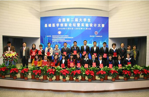 全国大学生基础医学创新论坛暨实验设计大赛由教育部高等学校医药学科基础医学专业与课程指导委员会、中国高等医学教育学会、高等学校实验教学示范中心联席会联合举办,涉及生物学与医学等多个学科领域,主要由创新论坛和实验设计大赛两部分组成,目前已成为全国基础医学教育领域影响最大的学生竞赛活动。本届大赛由天津医科大学承办,来自全国各地35所参赛院校的200件作品参加了大赛的角逐。