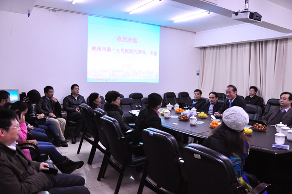 11月16日上午,郴州市人民医院院长黄仁彬等14人来院参观交流,院领导罗爱静、朱晒红在综合楼一会议室接待了黄仁彬一行。