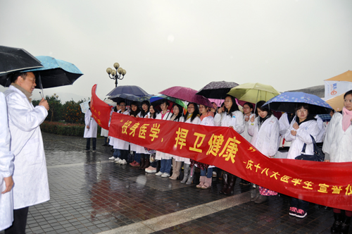 “健康所系,生命相托”同学们庄严地宣誓,每个人脸上都呈现出严肃的神色,同学们明白选择了这一神圣的职业, “人的生命高于一切”,责任之重大,宣誓声在风雨中铿锵响起,在耳边回荡着,绵绵不绝,并深深地刻在每个人的心中。宣誓后同学都表示将谨记医学誓言全身心投入医学、捍卫健康。