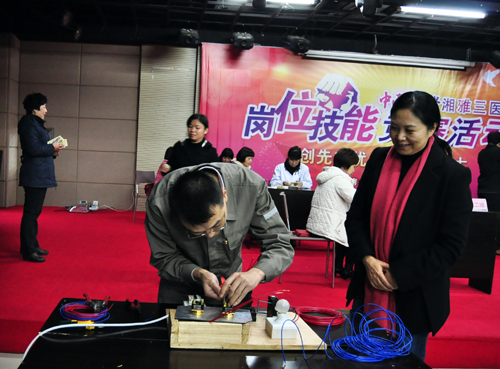 本次技能大赛由党委办公室主办,后勤办、能源动力中心、护理部、财务部承办,同时还得到宣传办、团委及各党支部书记的积极参与和大力支持,后勤党支部书记袁军还参与设计现场和布置会场。据悉,本届岗位技能竞赛除现场进行的财务收费窗口技能竞赛、维修电工技能竞赛、及管道(水)工技能竞赛外,汽车驾驶员技能竞赛以及护理操作技能竞赛也正在紧锣密鼓地进行之中。