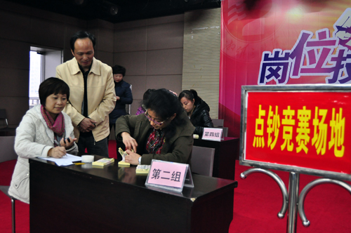 现场进行的是财务收费窗口技能竞赛、维修电工技能竞赛以及管道(水)工技能竞赛,随着一声令下,各项比赛分别同时开始。财务收费窗口技能竞赛共有人近70人报名参赛,比赛项目为点钞。每位选手面前都有3扎点钞“练功券”,考验大家在完全正确的前提下谁所花时间的最少。最终,前3名选手都在2分钟之内完成了比赛,分获一二三等奖,另有7名选手获优秀奖,其中熊晓琼获得冠军。维修电工技能竞赛考察的是开关控制线路接线,经过紧张角逐,杨志勇在“功能实现”“完成质量”“完成时间”三项皆表现出色,无可争议地获得冠军。管道(水)工技能竞赛比拼的是入户水表安装与拆除,选手竞争异常激烈,所耗时间差距都在几秒之间,最终肖巩固惊险地赢得了比赛。