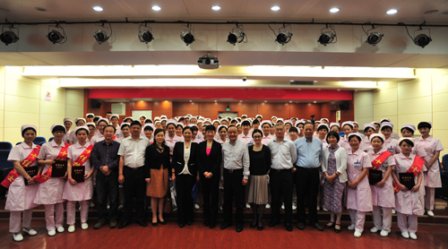 中南大学医管处姜新雅副处长对我院护理工作表示高度肯定,并对全院护理人员表示节日祝贺,她指出,“从南丁格尔提着小马灯精心照顾患者,战地伤员死亡率从42%降到2%,“护士”这一职业逐渐转变成有技术含量、受人尊敬的职业,护理学也逐渐成为一门学科”,“近年来,湘雅三医院在积极推进“优质护理服务示范工程”的同时,在护理安全管理方面做了大量卓有成效的工作”,姜新雅副处长还特别提到受表彰的“光明天使”,“这些护士全年有一半的时间在晚夜班中渡过,却无怨无悔,我为三院有这么一支勤劳、爱院、坚强的天使们而感到骄傲。”